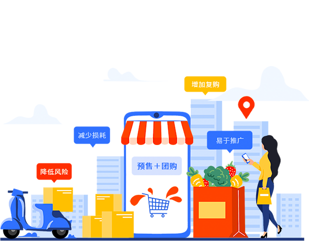 或用戶至團(tuán)長(zhǎng)處自提。平臺(tái)通過【預(yù)售+拼團(tuán)】,拼團(tuán)以銷定產(chǎn),降低損耗和成本、用戶可得到真正的實(shí)惠。